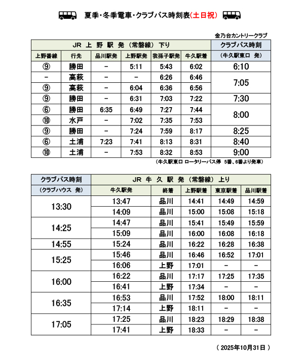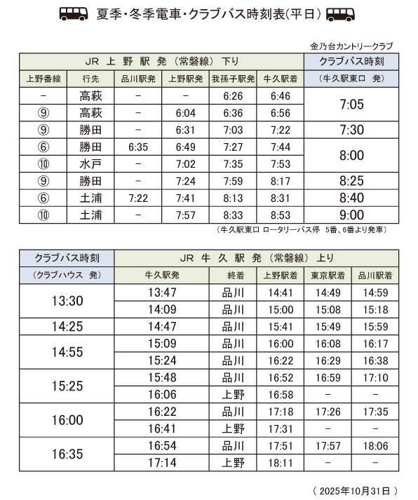 スタート時間の変更により、クラブバスの時刻表が冬季時間へ変わります。